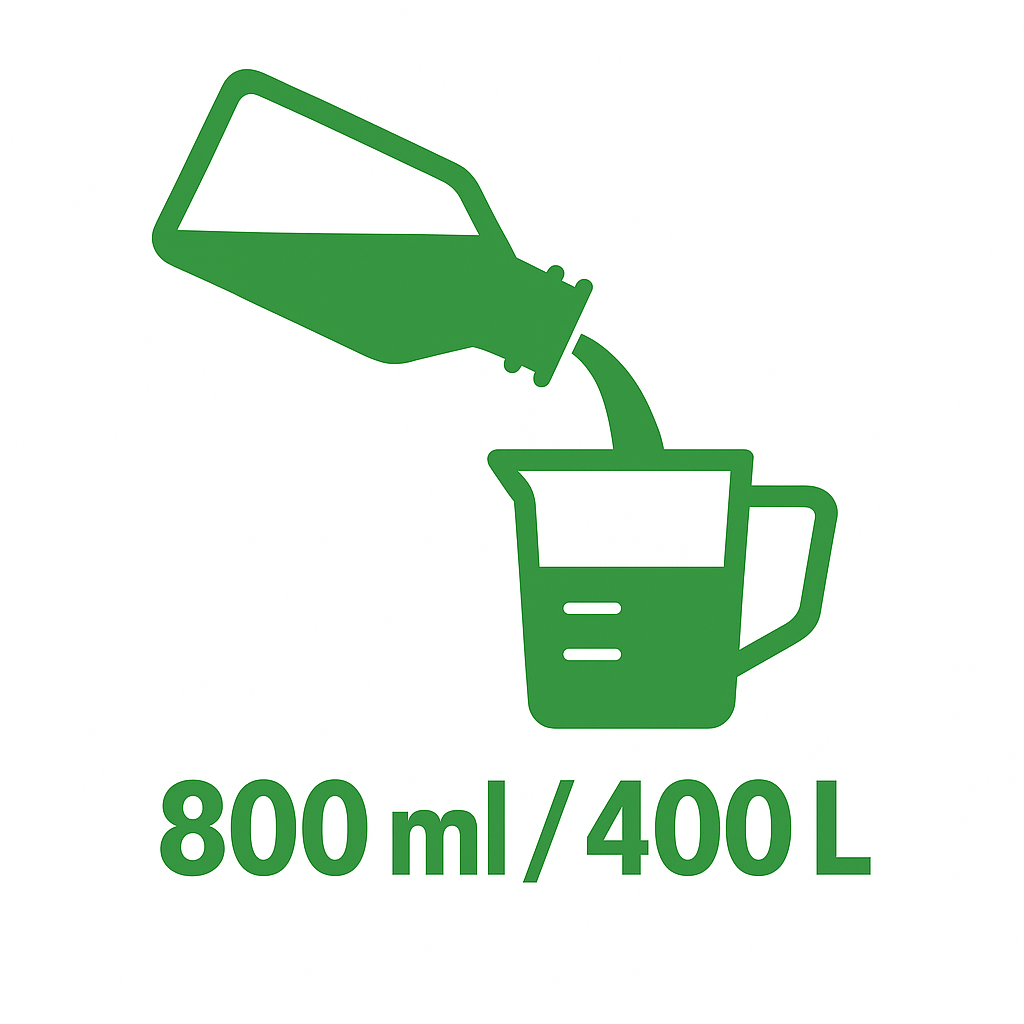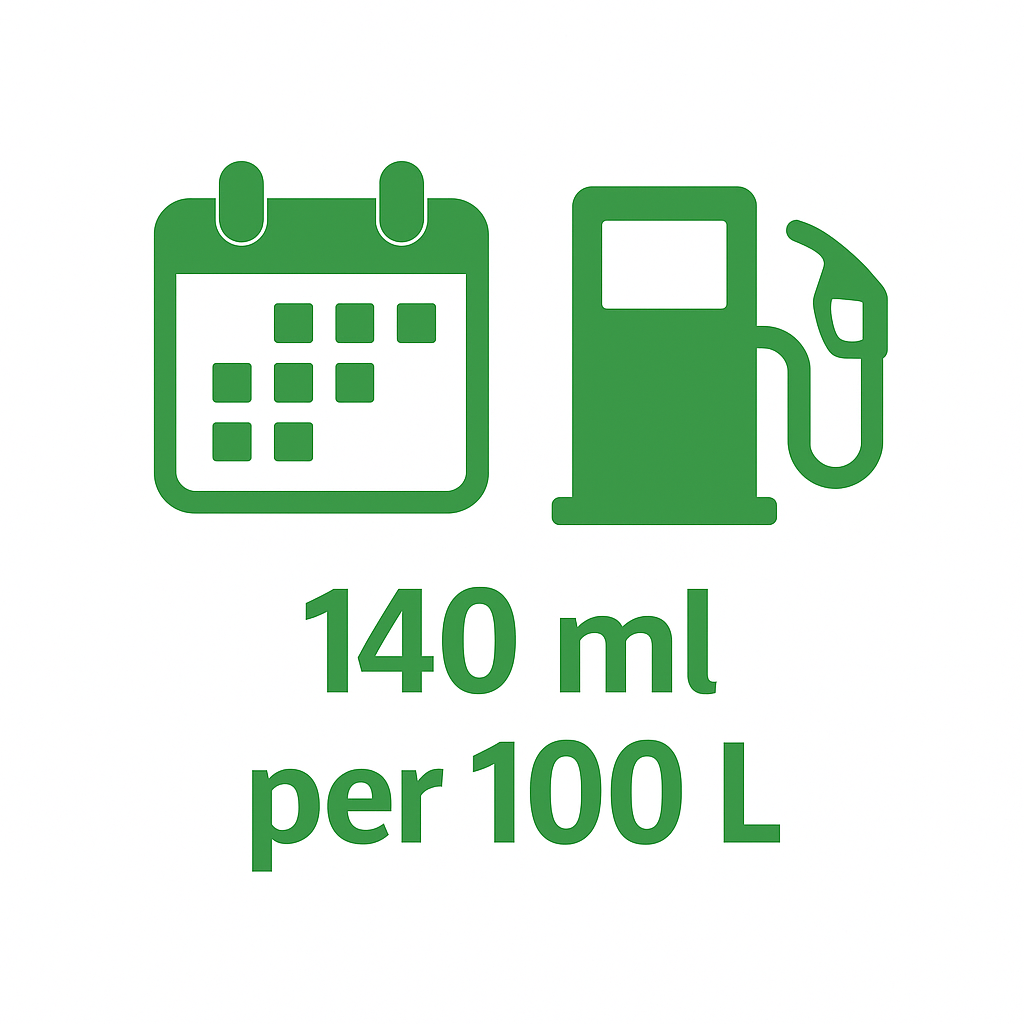Voeg 800 ml BestEcoFuel toe per 400 liter diesel vóór het tanken. Onvoldoende dosering resulteert in suboptimale prestaties.
